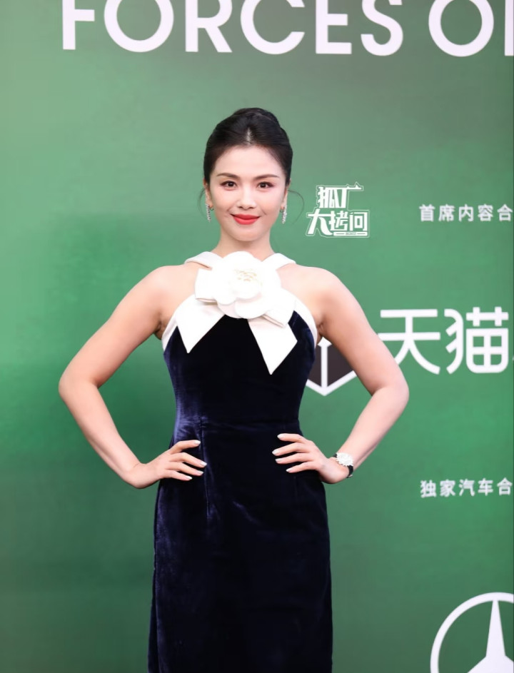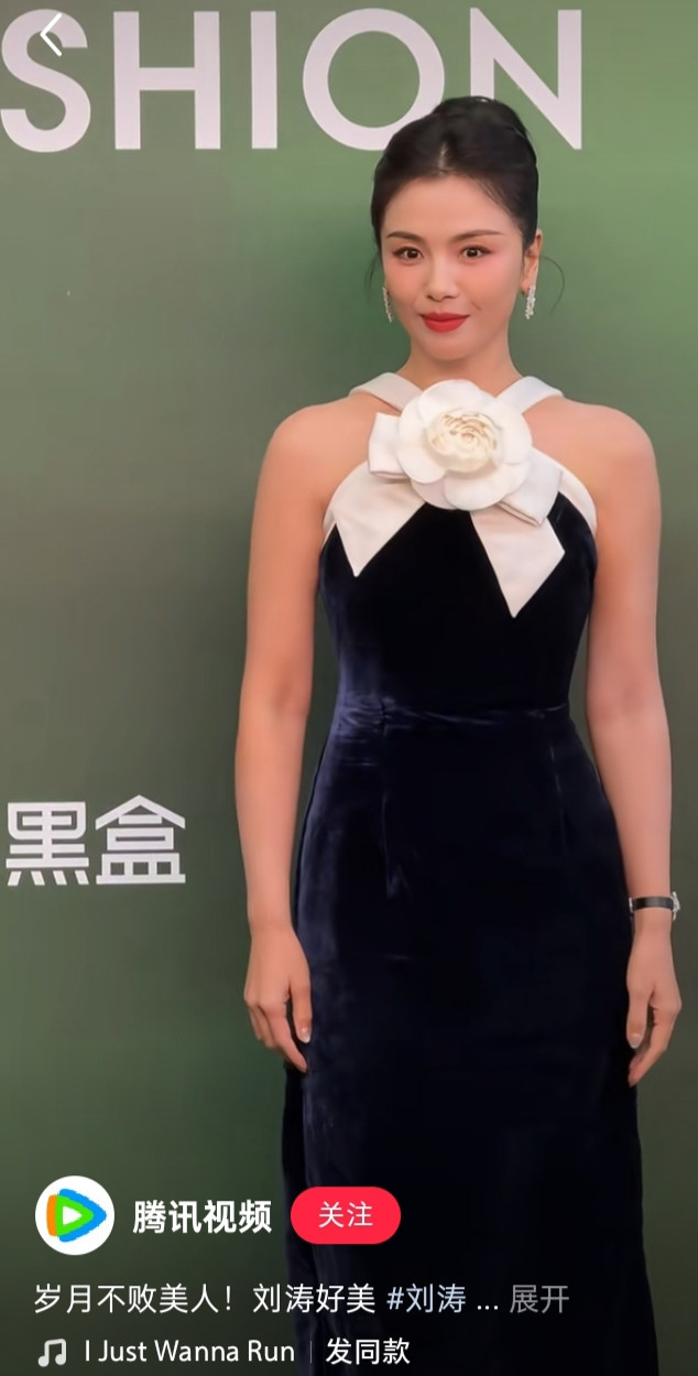 刘涛亮相活动, 丝绒礼服配精致盘发, 造型